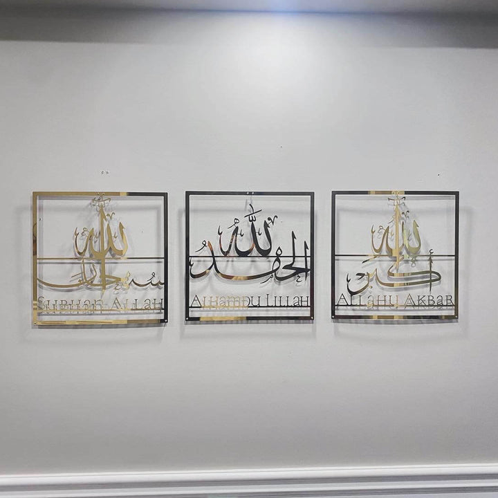 Tableau 3 ADKAR en DORÉ : Subhanallah + Alhamdulillah + Allahu Akbar (3D)